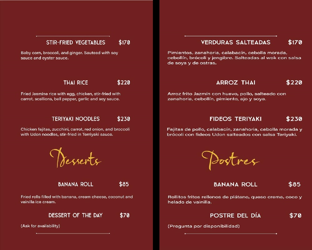 Welcome to The Rabbit Wok, a cozy eatery located at Heroes Oaxaquenos esquina, guerrero, 70934 Brisas de Zicatela, Oax., Mexico. Our menu boasts a delectable array of Thai food specialties that will tantalize your taste buds. From the savory Fideos de Arroz Con Pollo to the flavorful Brokkoli Karotte Champingon Reisnudeln Reis Padthai Sosse Tofu EI, each dish is prepared with fresh ingredients and authentic flavors. Come dine with us and experience the delicious fusion of Thai cuisine at The Rabbit Wok!